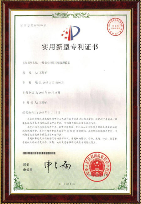 上一篇:實用新型專利證書2